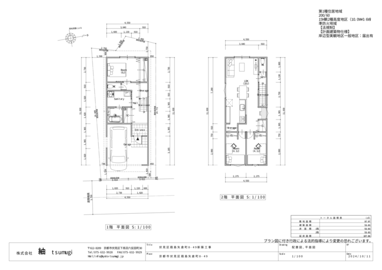 1階 55 ㎡ 2 階 55 ㎡ 合計 110 ㎡ 約32 坪(インナーガレージ含む)