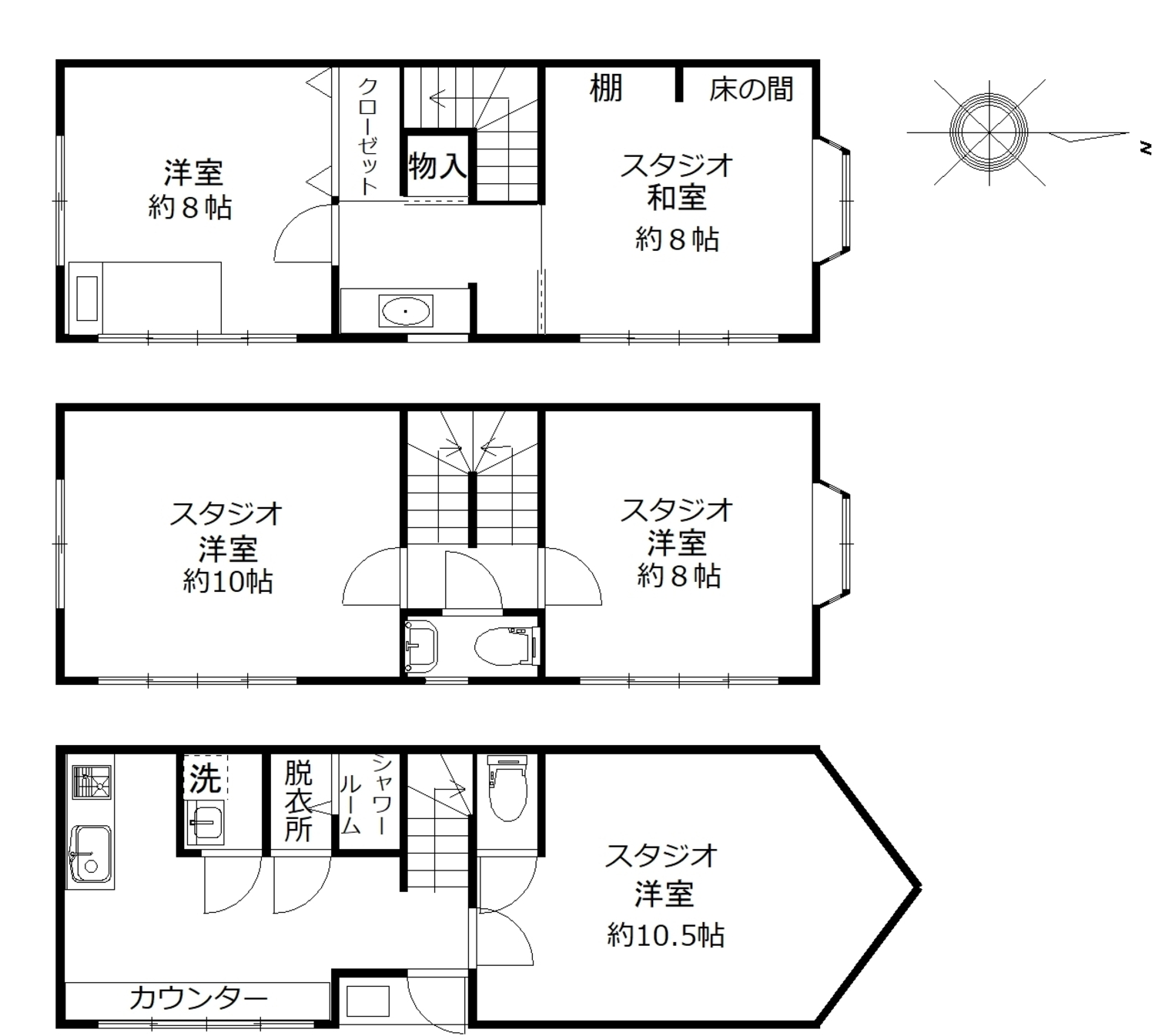 建物面積 1階37.26㎡ 2階35.92㎡ 3階35.92㎡ 延床面積109.1㎡